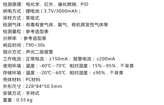 WASP-XM系列手持泵吸式氣體檢測儀是一種可連續(xù)監(jiān)測各類有毒有害氣體濃度的檢測設(shè)備。本產(chǎn)品適用于環(huán)境監(jiān)測,工業(yè)生產(chǎn)等對人體有害氣體的工作環(huán)境,能夠有效保障工作人員健康和生命安全不受到侵害。