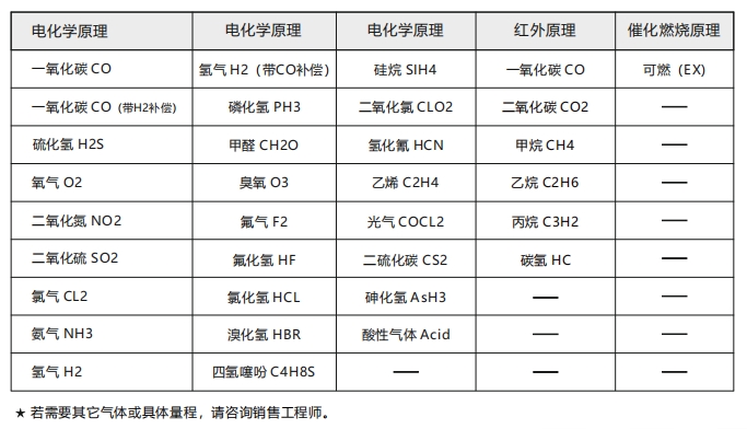 測量類型:電化學(xué)氣體傳感器、催化燃燒可燃?xì)怏w傳感器、紅外光學(xué)原理