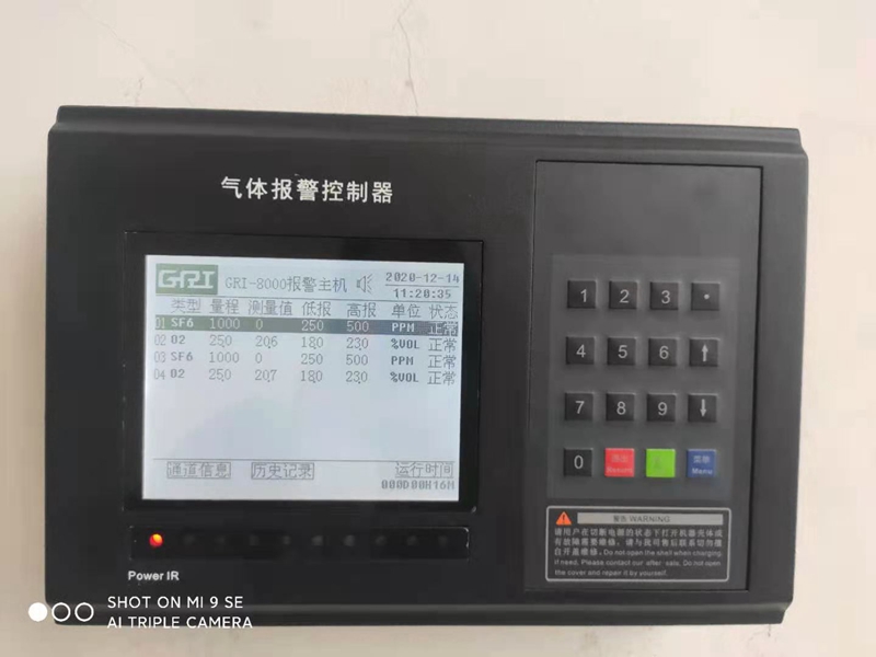 功能:實(shí)時(shí)在線(xiàn)監(jiān)測(cè)六氟化硫氣體泄露,監(jiān)測(cè)氧氣濃度。氣體在線(xiàn)檢測(cè)儀兩路繼電器輸出,監(jiān)測(cè)到泄露隨即啟動(dòng)聲光報(bào)警,并輸出信號(hào)聯(lián)動(dòng)風(fēng)機(jī)。保障人身安全。